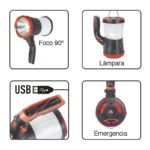 Esta linterna posee 4 funciones + función PowerBank. la función de Powerbank está indicada para carga de dispositivos electrónicos con 5V 1.5A de entrada o salida.