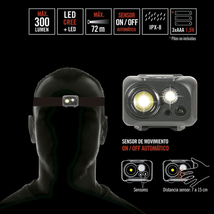LINTERNA FRONTAL LED CREE 300LM +SENSOR