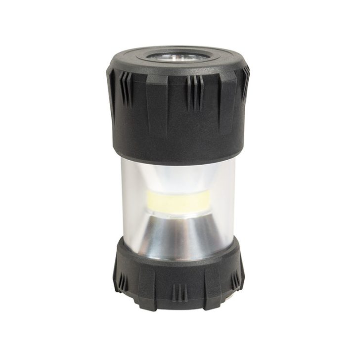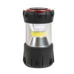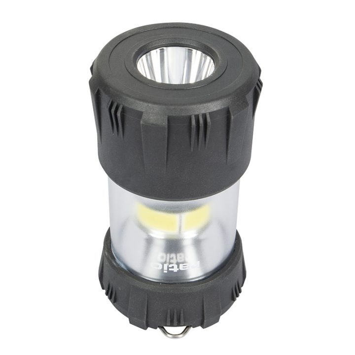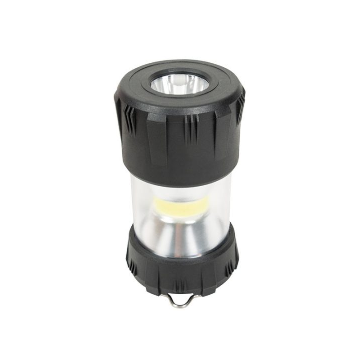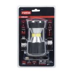 Esta linterna incorpora 2 cabezales intercambiables que permiten que se tenga la función de lámpara y linterna. Compuesta por una Linterna LED CREE XPG R5 y una lámpara LED COB de alta eficacia. Cuerpo de aluminio anodizado con extremo magnético. Peso neto sin pilas 197 gr. Impermeabilidad IP54. La linterna tiene una intensidad lumínica de 300 Lm y la lámpara 250 Lm. Incorpora un indicador de batería baja. Funciona con 3 pilas alcalinas AAA que no están incluidas. La función de linterna tiene un tiempo de servicio a modo 100% de 2 horas y a modo 25% de 8 horas. Por otro lado, la función de lámpara tiene un tiempo de servicio a modo 100% de 2 horas y a modo 25% de 6 horas. El alcance de la luz lámpara es de 17 m y de la linterna 160 metros. Se presenta en un blíster.