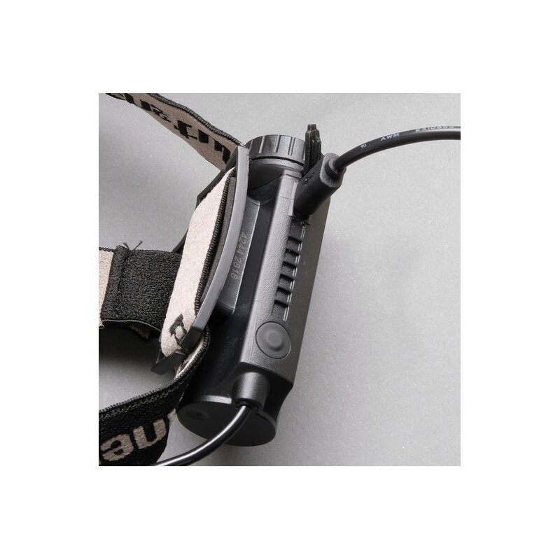 Linterna frontal recargable con iluminación de señalización en parte posterior.