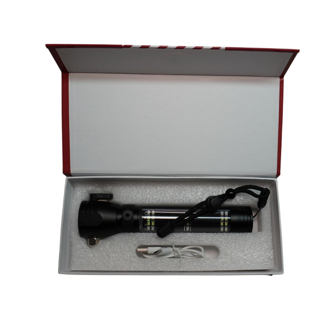 - Iluminación potente: Equipada con tecnología LED CREE XPE y COB, proporciona un alcance de hasta 100 metros, ideal para actividades al aire libre y situaciones de emergencia.