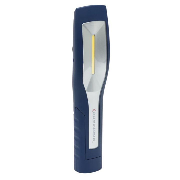 Lámpara LED recargable con cabeza inclinable.