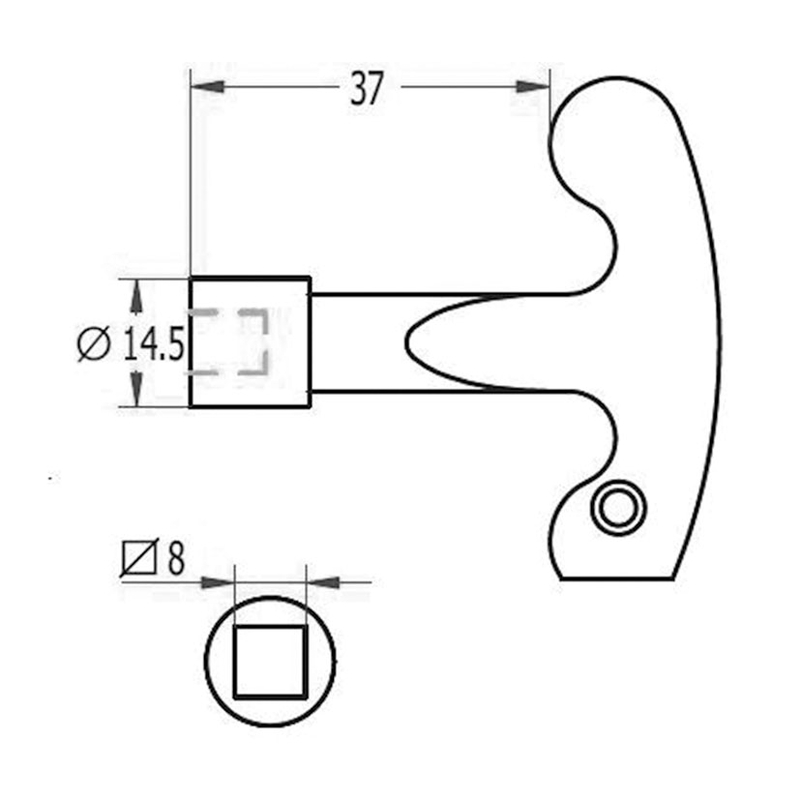 Medida 8 mm de cada lado del cuadrado que está dentro de la cerradura. Se presenta en una bolsa de 10 unidades.