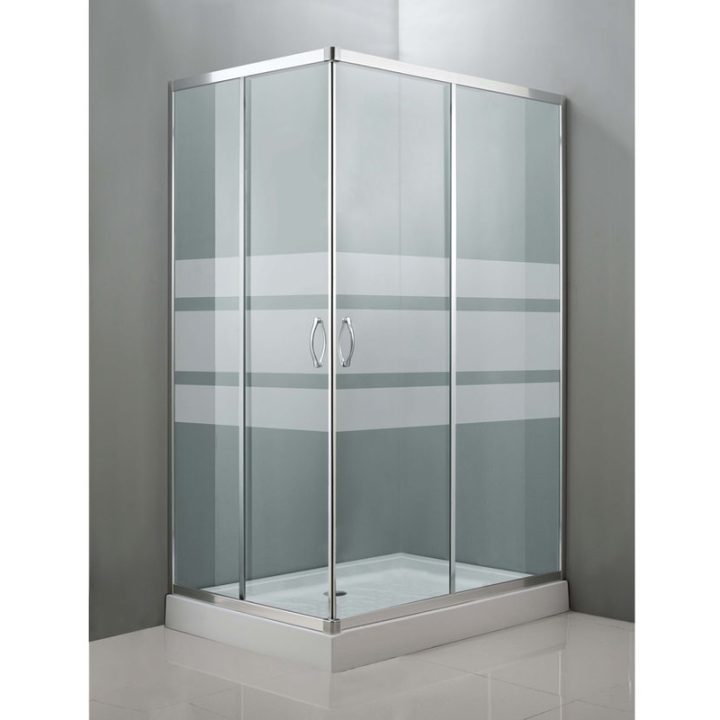 Esta mampara para plato de ducha, posee un bonito y elegante diseño gracias a sus formas rectas y su serigrafiado horizontal.