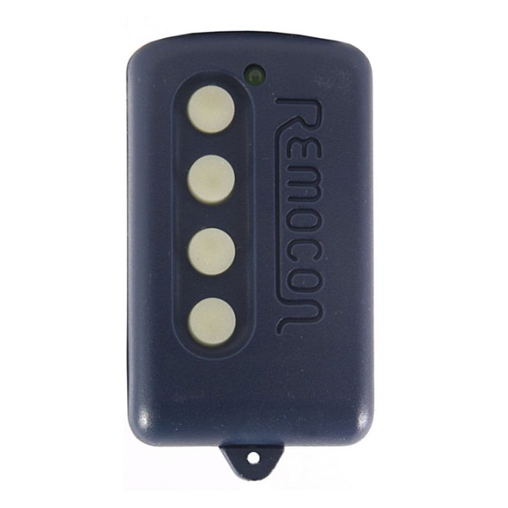 Mando de apertura mediante 4 canales de frecuencia variable. Dispone de autoprogramación y admite la unificación de 4 mandos a distancia. El mando es de color azul y se presenta en una caja.
