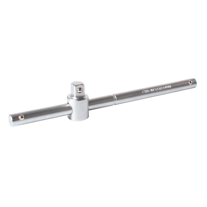 Este mango deslizante tipo T es un accesorio para llave de vaso que facilita su uso en algunas ocasiones. Está fabricado en acero cromo-vanadio con acabado satinado para evitar la corrosión y es una herramienta cómoda de gran durabilidad. Ajustada a la norma DIN 3123.