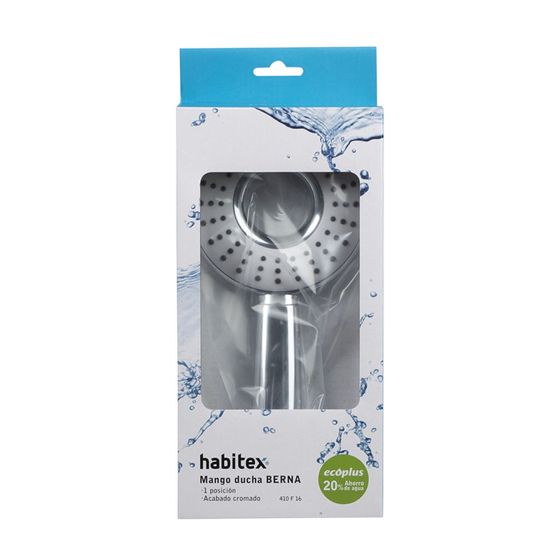 Fabricado en plástico ABS con acabados cromados y frontal en color blanco. Dispone de un sistema antical para una mayor durabilidad y además tiene de una 1 posición. Se presenta en una caja. Disponemos de más modelos de esta misma serie en nuestra web. 20% ahorro agua.