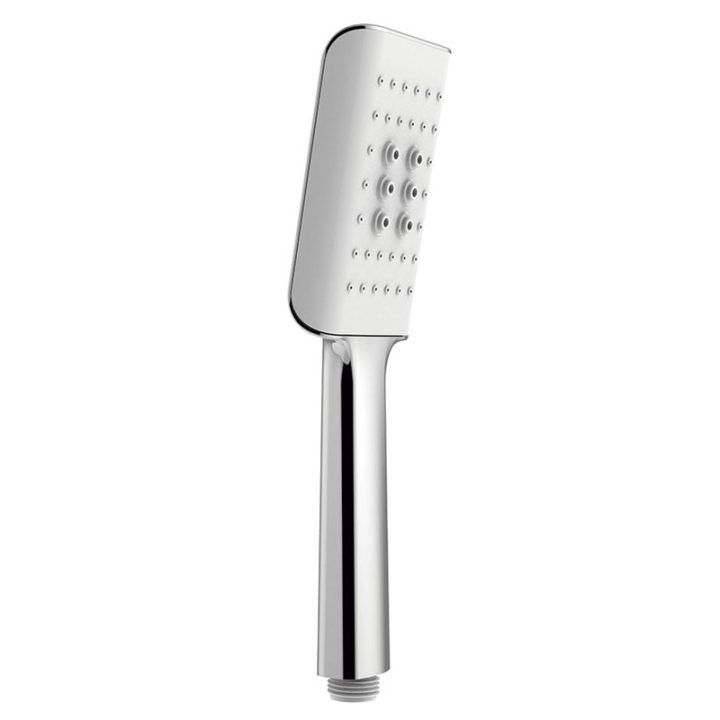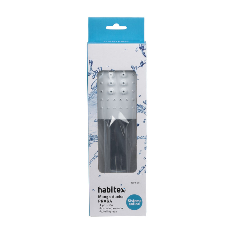 Mango de ducha cuadrado fabricado en plástico ABS con acabados cromados y frontal en color gris. Dispone de un sistema autolimpiable de fácil limpieza de cal para una mayor durabilidad y además tiene de una 1 posición. Se presenta en una caja. Disponemos de más modelos de esta misma serie en nuestra web.