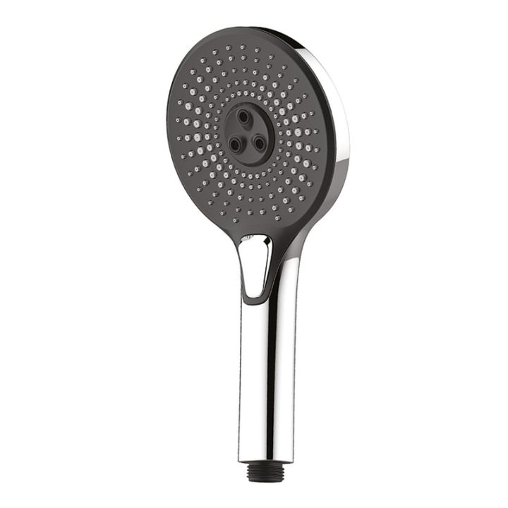 El cabezal o mango de la ducha es necesario en tu bañera o ducha. Puedes encontrar en nuestra web el que mejor se adapte a tus necesidades. El mango o cabezal de ducha HABITEX Sidney es standard. Está fabricado en plástico ABS cromado con el frontal en negro mate. Dispone de un pulsador para que puedas cambiar las posiciones del caudal del agua. Además, tiene sistema antical para una mayor durabilidad y limpieza. Con este mango ahorrarás un 20 % de agua. Viene presentado en una caja.