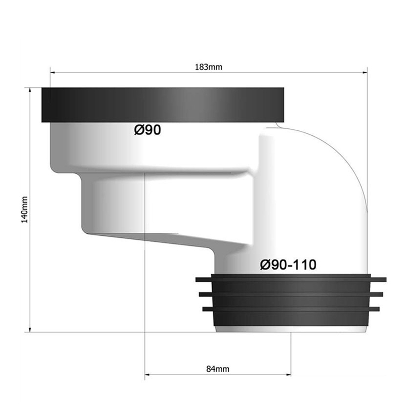 Esta conexión tiene un diámetro de 90-110 mm. Las juntas son labiadas y no necesita adhesivo. Se presenta en una bolsa. Puedes consultar la ficha técnica que tenemos colgada en nuestra web. cumple con la norma ISO 9001:2008