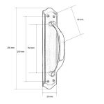 Esta manilla está fabricada en hierro con acabado latonado. De estilo vintage, muy actual con placa clásica de cantos decorativos para puertas de entrada o paso. Tiene unas medidas de 256×49 mm. Puedes consultar el croquis que tenemos colgado en nuestra web. Se presenta en una caja. En nuestra web tenemos el manillón y más accesorios de esta misma serie para que los puedas combinar. Se sirven 4 unidades.