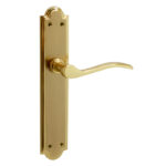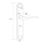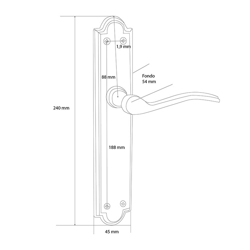 Manilla con placa para puerta de interior en latón y acabado pulido satinado. Tiene unas medidas de 45xh242 mm. Se presenta en una caja. Puedes consultar el croquis que tenemos colgado en nuestra web.