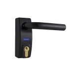 Es una manilla de diseño modular en color negro, equipada con un cilindro que permite su acoplamiento a dispositivos antipánicos de sobreponer. Ofrece una sujeción segura al dispositivo a través de estoques, lo que garantiza una instalación estable. Además, es reversible, lo que facilita su uso en puertas con apertura tanto a la derecha como a la izquierda.