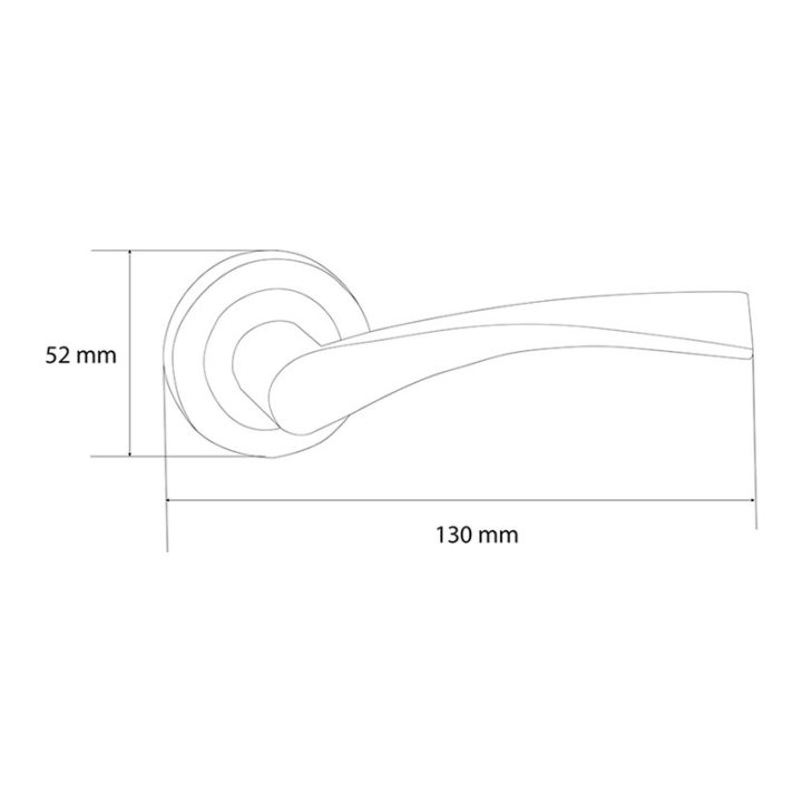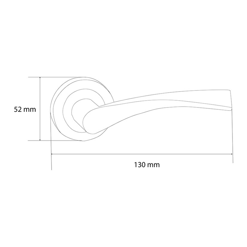 Manilla con roseta fabricada en aluminio/zamac con acabado niquelado. Tiene un diámetro de 52 mm y viene presentada en una caja. Puedes consultar el croquis del producto que tenemos colgado en nuestra web.