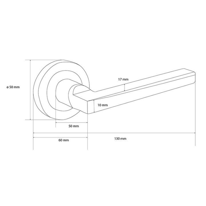 Manilla con roseta redonda fabricada en aluminio/Zamak de acabados en niquel satinado. Tiene un diámetro de 50 mm y viene presentada en una caja. Puedes consultar el croquis que tenemos colgado en nuestra web.