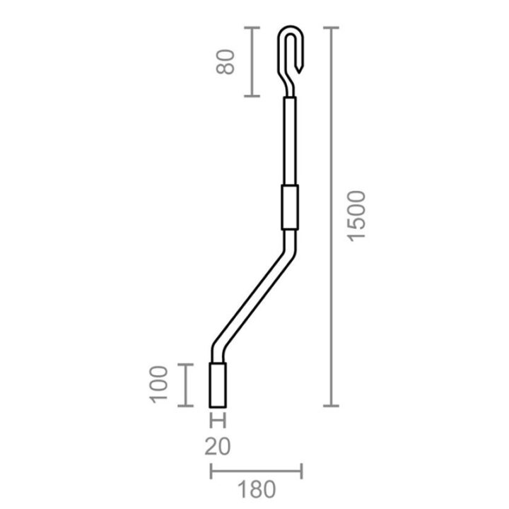 Esta manivela permite abrir y cerrar toldos. Está fabricada en Acero de color blanco. Tiene unas medidas de 180x180x1500 mm. Puedes consultar el croquis que tenemos colgado en la web. En nuestra web tenemos disponible el tornillo para el mecanismo de enrollar.