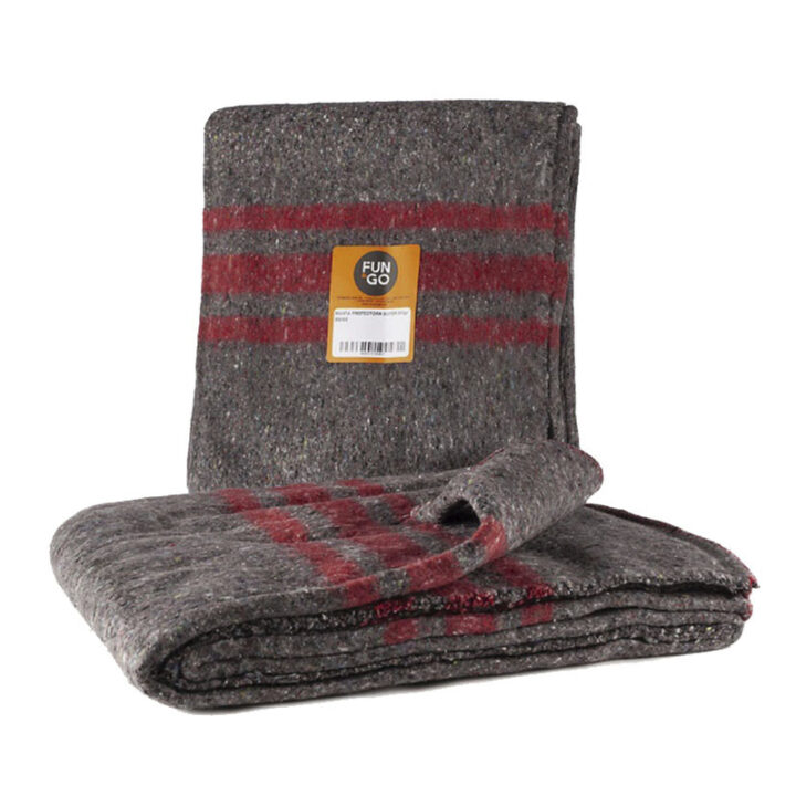 Manta de mudanza recomendada para proteger tus muebles electrodomésticos y cualquier otro objeto, de arañazos, golpes o rozaduras durante el transporte. La manta tiene un acabado con costuras en los bordes para evitar que se deshilachen, aumentando así su resistencia y duración. Su composición: 80% acrílico regenerado de algodón, 20% de lana y poliéster 435 gr/m2. Su peso es de 1250 Kg y un grosor de 5 mm. La puedes lavara en agua fría o a 30ºC de temperatura máxima. No apta para secadora.