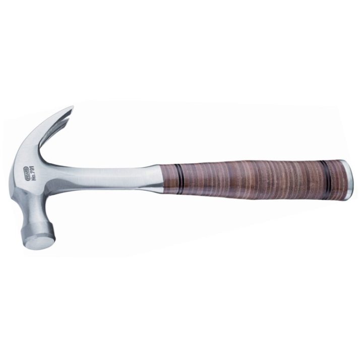 Martillo de carpintero modelo americano con uña sacaclavos con cabeza y mango de acero de aleación especial forjado, endurecido y templado, pulidos con capa anticorrosiva transparente. Cabeza de impacto y cuello redondos. Empuñadura de cuero tratado que asegura un perfecto agarre y absorbe la humedad.