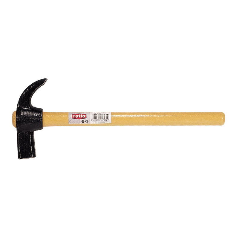 Martillo de orejas con cabeza de acero y mango de madera barnizada de la marca RATIO.