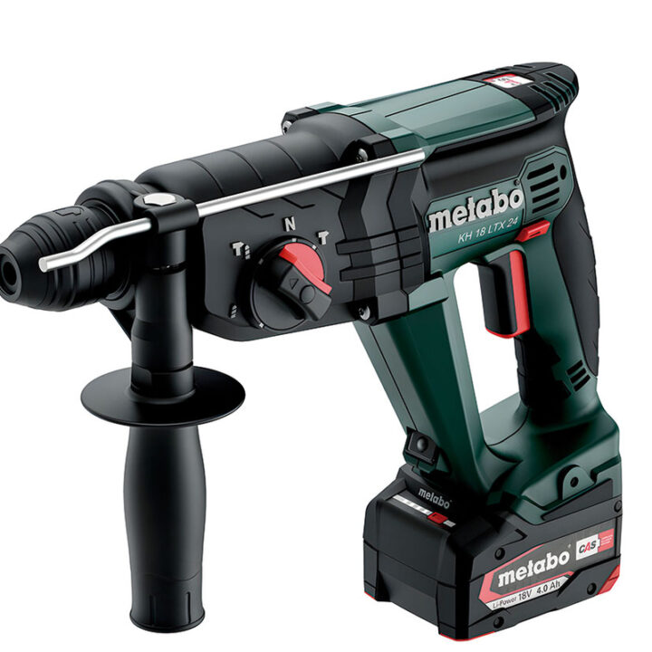 El martillo a batería METABO KH 18 LTX 24 combina 3 funciones: perforar con golpe perforar y cincelar. Dispone de alojamiento SDS-plus para perforar con martillo y cincelar cuando precises. Con velocidad variable según material que estés perforando, arranque electrónico suave, centrado y preciso, embrage de seguridad que bloquea la broca en caso de desacomplamiento mecánico del accionamiento, para un trabajo seguro. Dispone de punto de enganche para correas de seguridad de herramientas para trabajar en grandes alturas. Gracias a su luz Led dispondrás de una iluminación óptima del lugar. Incluye empuñadura adicional, tope de seguridad, 2 baterías (18V/4.0Ah), cargador ASC55 y metaBOX 165L de transporte.
