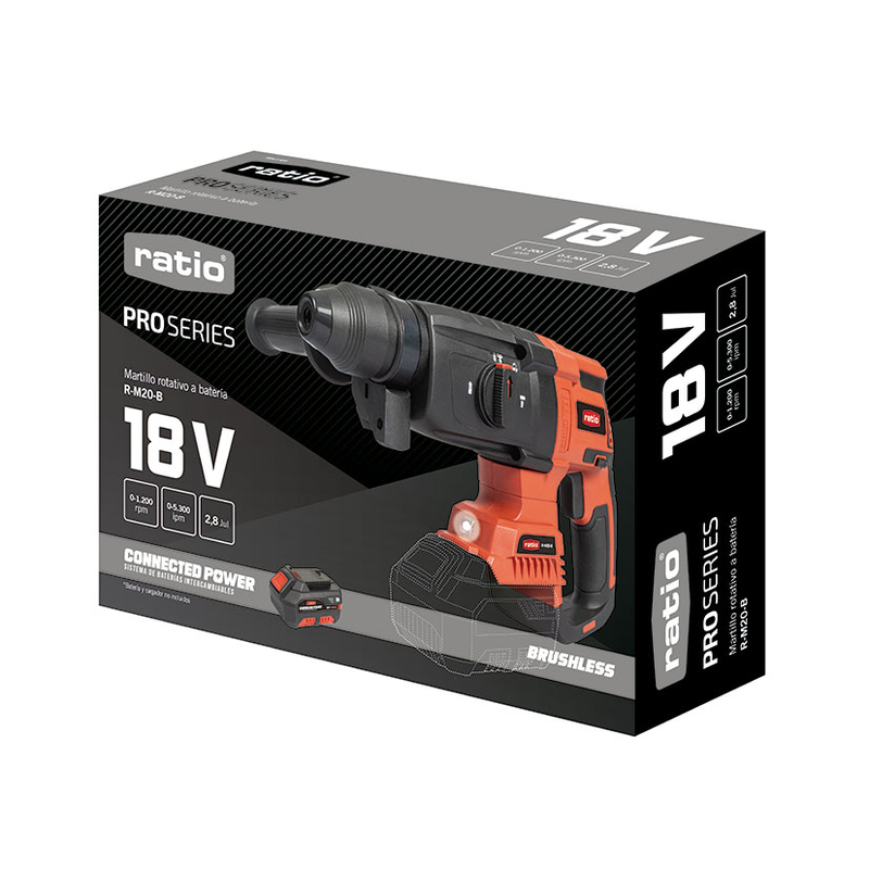 El martillo rotativo de impacto de la serie ProSeries cuenta con una batería de litio de 18V, un motor sin escobillas BRUSLESS asegurando un rendimiento eficiente y duradero, reduciendo el mantenimiento y aumentando la vida útil del motor. Dispone de anclaje SDS-Plus para un cambio rápido y seguro de brocas y 4 funciones: perforación, perforación con percusión, cincelado y cincelado con fijación. Gracias a su empuñadura auxiliar, proporciona un agarre adicional y control durante su uso, y a la varilla de profundidad que ayuda a mantener la precisión en la perforación que necesitas.