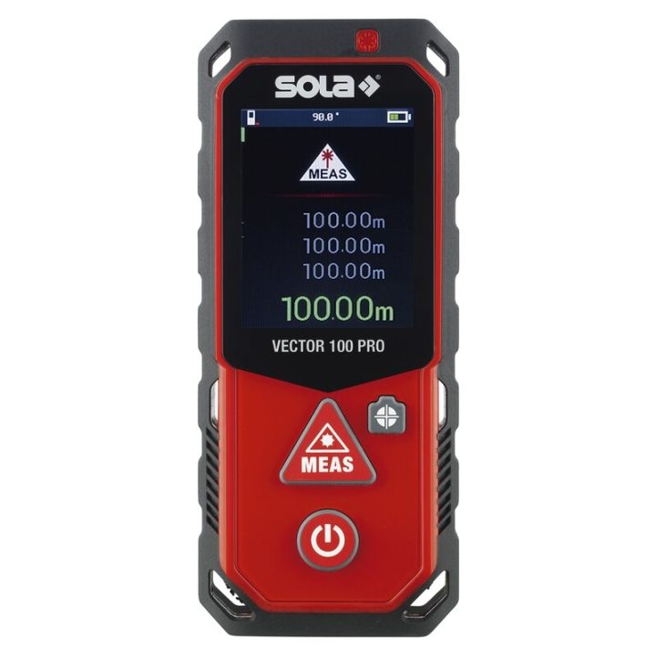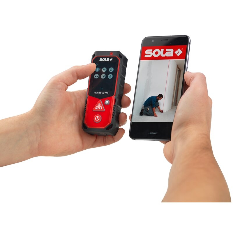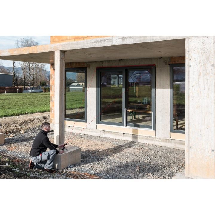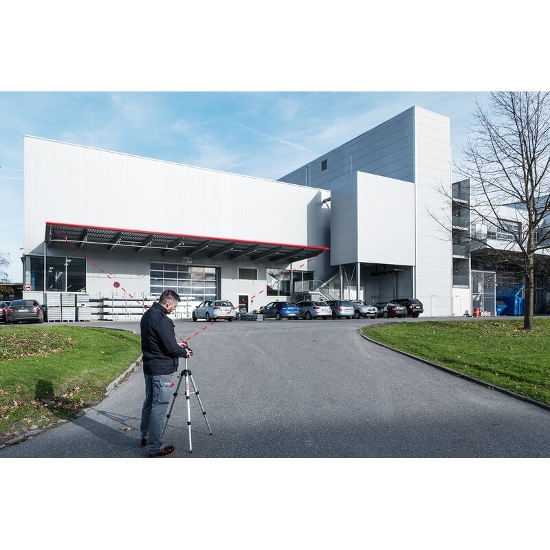 Medidor láser profesional con cámara para facilitar la orientación al punto de destino, interfaz Bluetooth para la transmisión de datos a aplicaciones compatibles y sensor de inclinación para nivelaciones y mediciones de ángulos.
