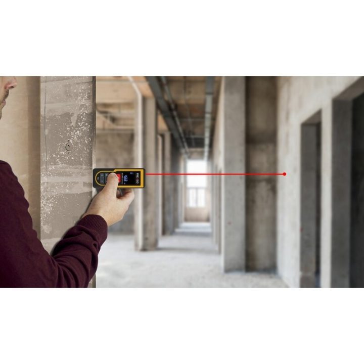 Medidor láser con cálculo automático de áreas y volúmenes, sistema de medidas multifunción de área, volumen, distancia, y longitud, medición continua y pantalla LCD retroiluminada para una mejor lectura.