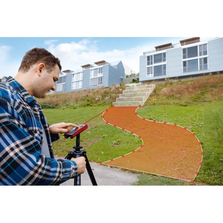 Gracias a la base Smart integrada pueden medirse distancias desde una posición, p.ej. anchos, entre los puntos que se quiera incluso si son inaccesibles.