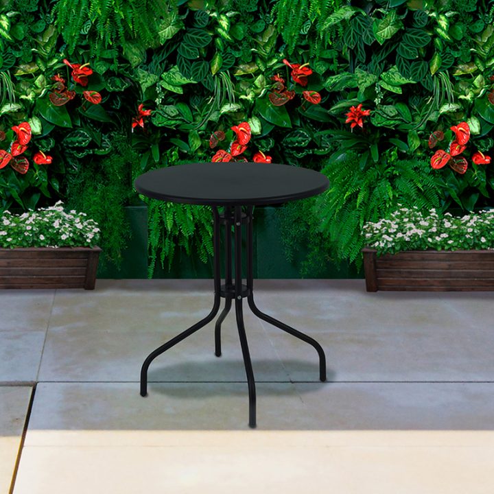 La mesa de balcón Lara es la elección perfecta para quienes buscan un mueble práctico y elegante que se adapte a cualquier espacio exterior. La estructura está fabricada en acero con acabados en color negro, ofreciendo resistencia y un diseño moderno. Es ideal para balcones o espacios reducidos, sin sacrificar estilo ni funcionalidad. Tiene unas medidas de 60 cm de diámetro y una altura de 70 cm.