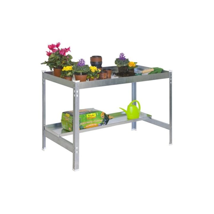 Es rigido. No necesita anclaje a la pared. Es uno de los BT con mejor relación calidad/precio del mercado. Tiene un grosor de MDF de 16 mm (0.6 ). La superficie principal aguanta hasta 600 kgs. La bandeja inferior del BT aguanta hasta 250 kgs. . La bandeja dispone de agujeros para filtrar el agua.- Montaje en 9 minutos. Montaje sin tornillos. Color del producto GALVANIZADO. Dimensiones 840x1500x700. Nº estantes 2