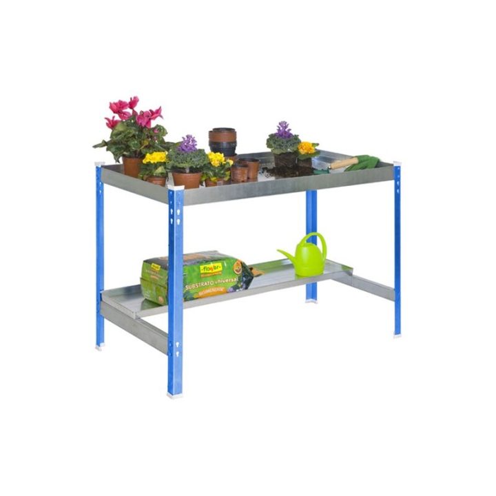 Es rigido. No necesita anclaje a la pared. Es uno de los BT con mejor relación calidad/precio del mercado. Tiene un grosor de MDF de 16 mm (0.6 ). La superficie principal aguanta hasta 400 kgs. La bandeja inferior del BT aguanta hasta 250 kgs. . La bandeja dispone de agujeros para filtrar el agua.- Montaje en 9 minutos. Montaje sin tornillos. Color del producto GALVANIZADO. Dimensiones 840x900x600 . Nº estantes 2