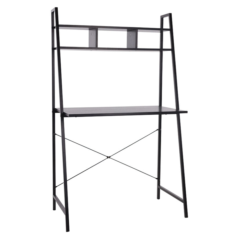Esta mesa escritorio tiene la estructura en metal de color negro e incorpora una balda en MDF. Tiene unas dimensiones de 84x46xh.142 cm