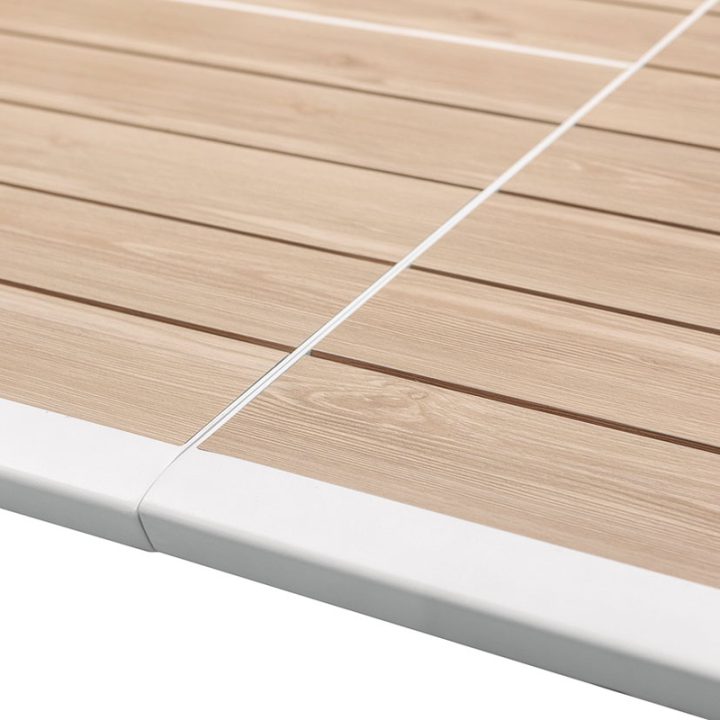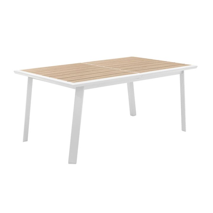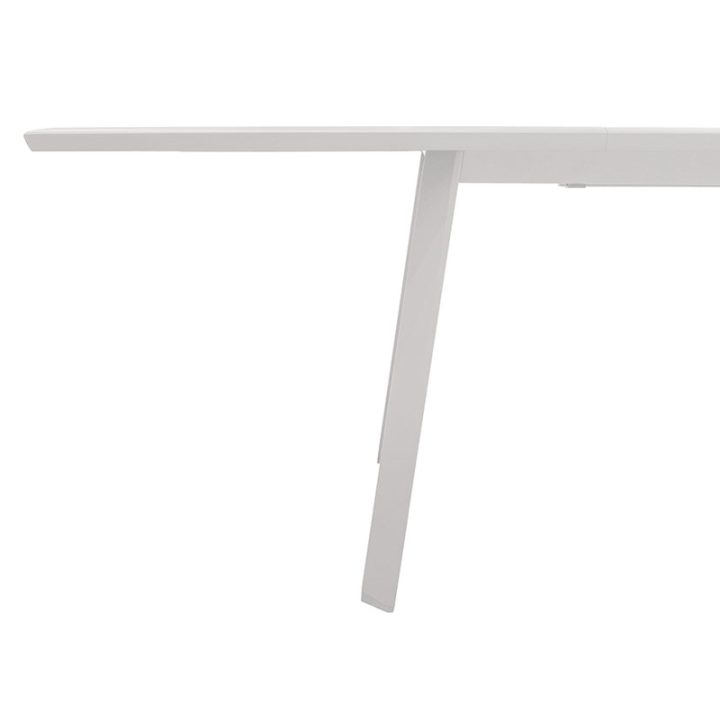 Esta mesa gracias a su extensión deslizante, la puedes adaptar fácilmente para una capacidad de hasta 10 comensales. La estructura es de aluminio tratada con epoxi antioxidante en color blanco, ideal para exteriores. La superficie de la mesa tiene lamas imitación madera. Las patas de la mesa son ajustables para compensar los suelos irregulares y aportar una mayor estabilidad. Disfrutarás de tus momentos de ocio en compañia de tus seres queridos en el jardín o terraza de tu casa durante la época estival. Esta mesa se sirve en una caja desmontada. Podrás combinar este producto con el resto de sillones de jardín que tenemos en nuestra web de la serie Pavonne.