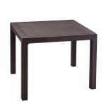 Esta mesa tiene una estructura trenzada de resina, material de gran resistencia en exteriores. Gracias al material de su estructura, hace que sea más ligera y de fácil transporte. La podrás combinar con el resto de mobiliario para jardín que nosotros disponemos en nuestra web. La mesa tiene unas dimensiones de 94×94 cm y una altura de 75 cm. De fácil limpieza, solo la tendrás que limpiar con agua y jabón neutro.