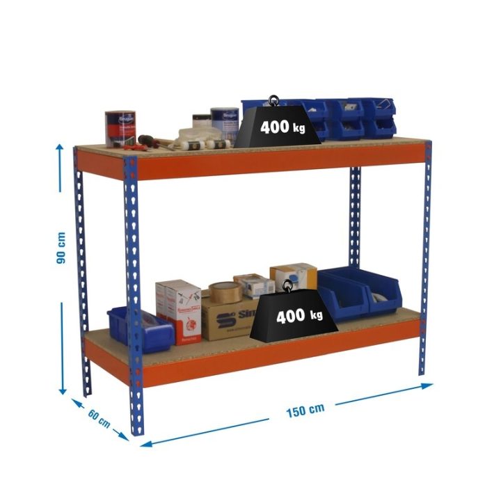 Mesa de trabajo metálica y de montaje sin tornillos de 2 estantes y 900x1500x600mms.