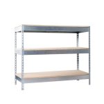 Mesa de trabajo metálica y de montaje sin tornillos de 3 estantes y 900x1500x600mms.