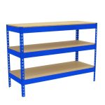 Mesa de trabajo metálica y de montaje sin tornillos de 3 estantes y 900x1500x750mms.