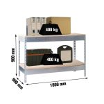 Mesa de trabajo metálica y de montaje sin tornillos de 2 estantes y 900x1800x900mms.