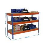 Mesa de trabajo metálica y de montaje sin tornillos de 3 estantes y 900x2100x900mms.