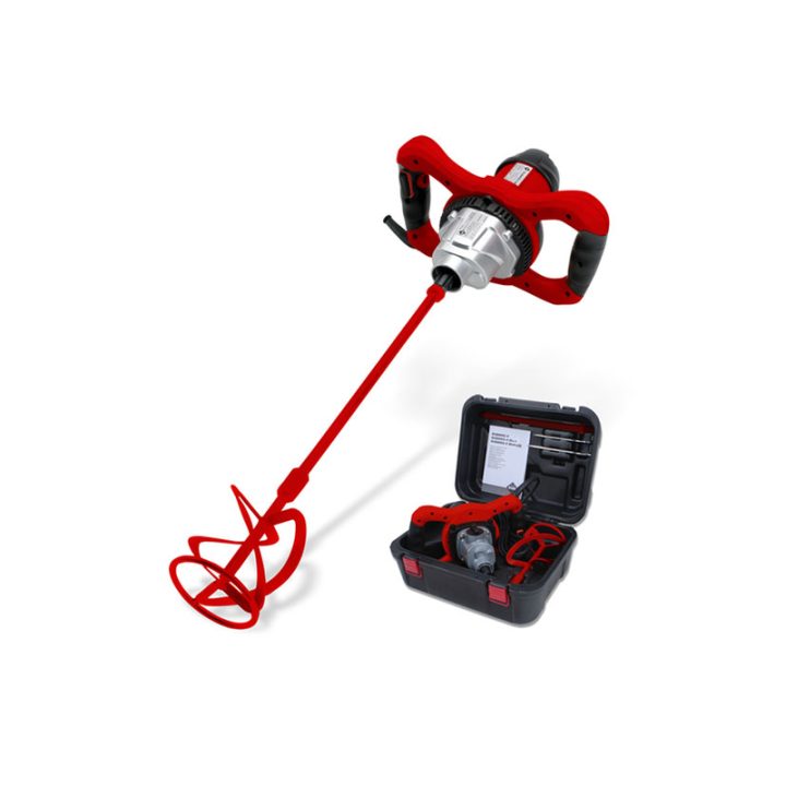 Este mezclador cuenta con anclaje de varilla de rosca M14, regulador electrónico de velocidad y doble empuñadura con mangos bimaterial que ofrecen a la herramienta una mayor ergonomía y confort al usuario. Dispone de control electrónico de velocidad 0-760 rpm con un motor de 1200 W de potencia. Incluye varilla mezcladora de mortero de 120 mm de diámetro, varilla de mezclado intercambiable con conexión M14, para mayor versatilidad y con diámetro máximo de mezclador de 140 mm. Además, destaca por el bloqueo de seguridad para evitar puestas en marcha involuntarias, caja reductora con 1 velocidad. Incluye juego de llaves y maletín para un fácil transporte. Viene presentado en una caja. Cumple con la normativa conforme con los requisitos de las directivas de máquinas; 98/37/EC, EN 640745-1:2006, EN 60745-2-1/A11:2007.