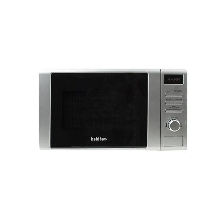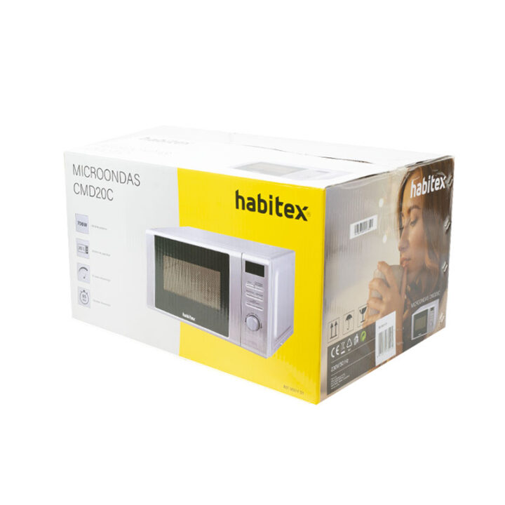 El microondas HABITEX CMD20B destaca por su diseño atractivo y compacto. Su interior es esmaltado en color blanco. Tiene una capacidad de 20 litros con 8 niveles de potencia que podrás seleccionar fácilmente mediante su panel digital. Te olvidarás de viejos trucos para descongelar sin tener que esperar varias horas a que el alimento esté preparado para cocinar. Su potencia es de 700 w tiene la función de bloqueo niños para una mayor seguridad. Incluye plato cristal de ø 25,5 cm. Tiene unas dimensiones de 44x34xh.25,9 cm (ancho x fondo x alto). Las dimensiones internas son: 30,6×30,3xh.20,8 cm. Tiene 3 años de garantía.