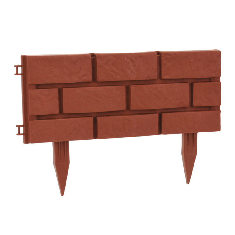 Esta valla o minicerca de jardín está fabricada en polipropileno de color marrón con imitación a ladrillo. Es resistente a la intemperie y fácil de instalar, solo tienes que incrustar la base puntiaguda en el terreno y listo.