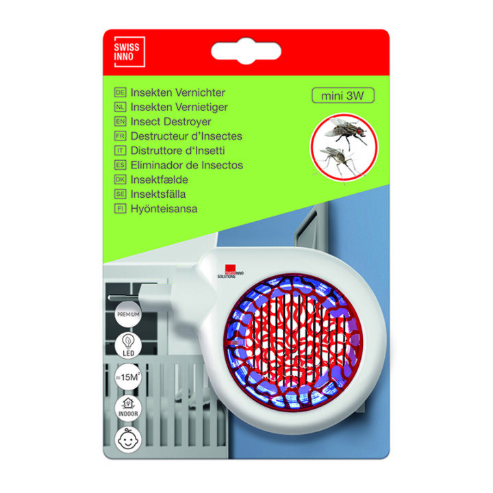 Posee una luz ultravioleta que atrae a moscas mosquitos y polillas y los mata rápidamente. Es inofensivo para personas o máscotas. Debe limpiarse 1 vez a la semana. Tiene cobertura para 15 m2 y posee una potencia de 3 W. Tiene una vida útil de 10.000 horas. Además cumple con todos los requisitos de seguridad de la CE.