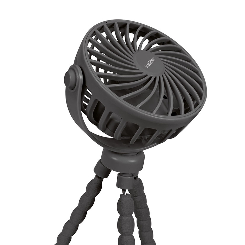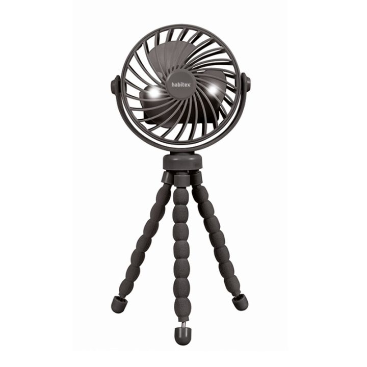 El mini ventilador de sobremesa HABITEX VMM127 es ideal para escritorios, mesitas de noche o llevarlo a cualquier lugar. La potencia del ventilador es de 3 V, con 3 niveles de velocidad que podrás ajustar según necesites en cada momento. El cabezal es oscilante 360º, permite dirigir el flujo de aire en cualquier dirección. Dispone de 3 patas flexibles que ofrecen estabilidad y permiten colocarlo en distintas superficies. Además incorpora una luz Led para mayor funcionabilidad en ambientes oscuros. Se carga mediante USB recargable de tipo y ofrece una autonomía de 2h.