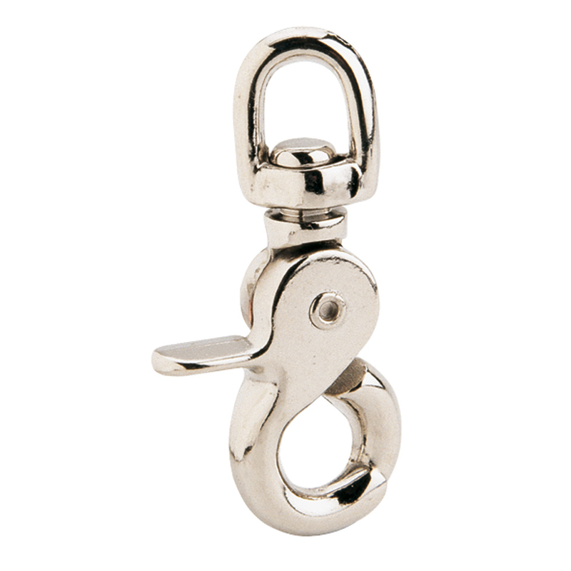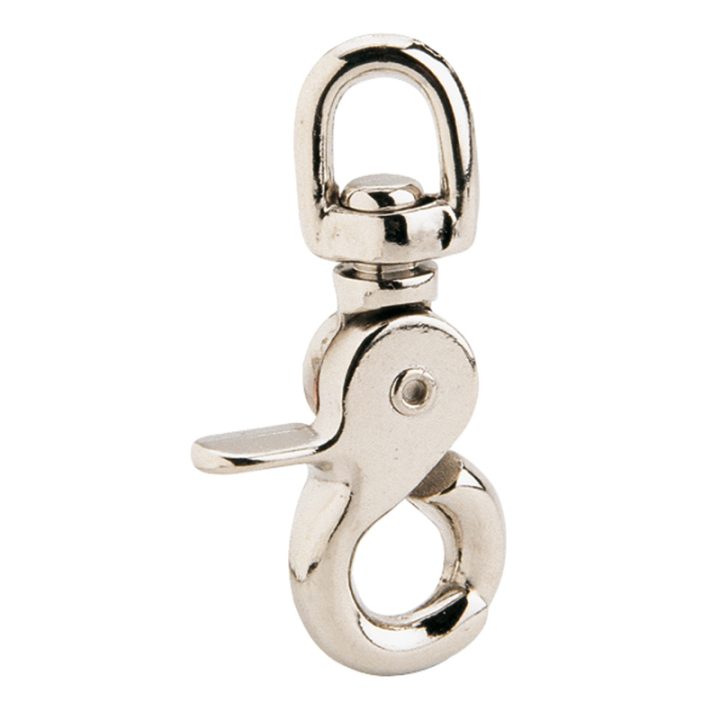 Este mosquetón con anilla giratoria es un complemento utilizado en hípica, buceo entre otros.