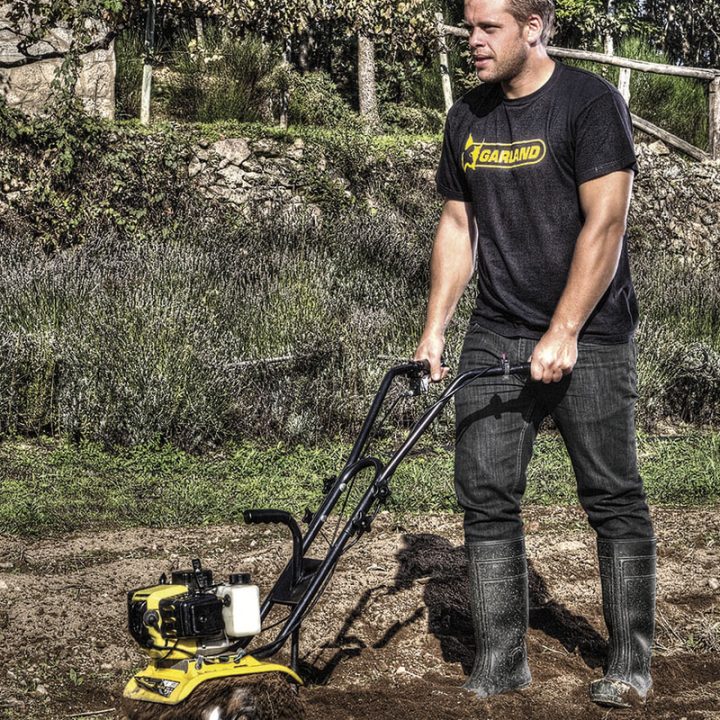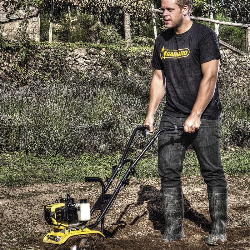 Esta motoazada de motor de 2 tiempos y 49 cc te permitirá realizar trabajos con rapidez y comodidad, especialmente aquellos que consistan en escardar y batir la tierra eficazmente. Ofrece una anchura de trabajo de 24 cm y marcha adelante. Su rotabator cuenta con 4 grupos de resistentes cuchillas de acero e incluye un ingenioso sistema de tiro para fijar la profundidad de trabajo. Viene presentado en caja.