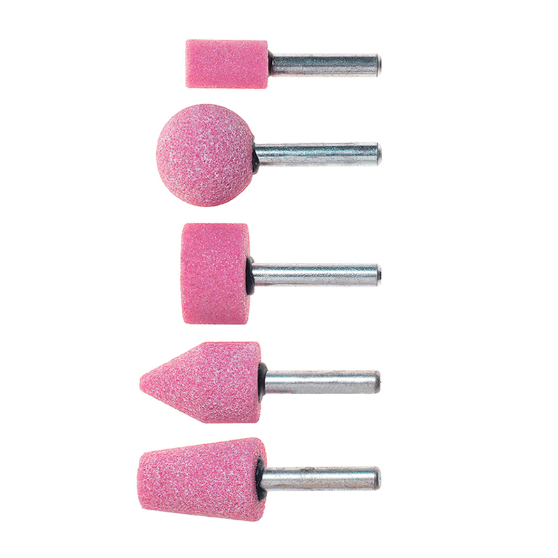 Este juego está fabricado en corindón rosa, un material de primera calidad y de dureza homogénea para el trabajo en materiales duros. Viene presentado en un blíster.