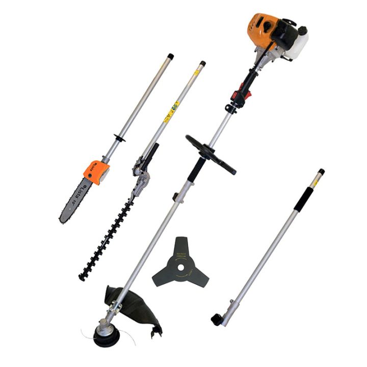 Con una sola herramienta podrás realizar 4 funciones diferentes gracias a sus complementos intercambiables: cortahierbas/cortabordes, desbrozadora, cortasetos y podadora.