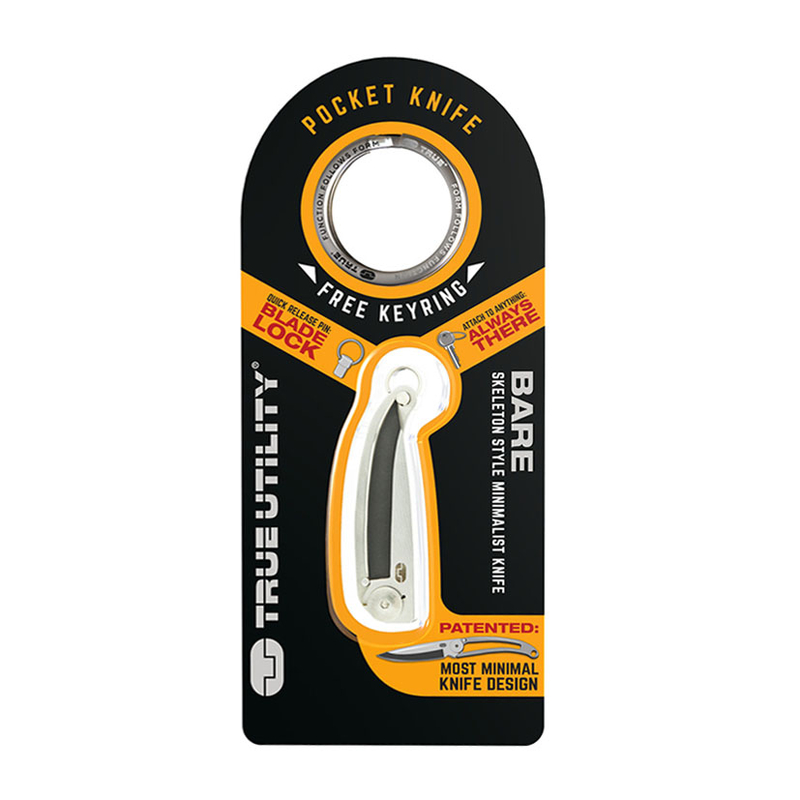 La navaja llavero TRUE Bare está fabricada en acero inoxidable 420 con una capa de titanio en la hoja y tan solo pesa 16 gramos. Es reistente y confiable para el trabajo o el uso diario. Te la puedes guardar cómodamente en tu bolsillo gracias al diseño liviano y pequeño. Además, dispone de un pasador de hoja de bloqueo de liberación rápida, que actúa como un protector de hoja seguro cuando el cuchillo no está en uso.