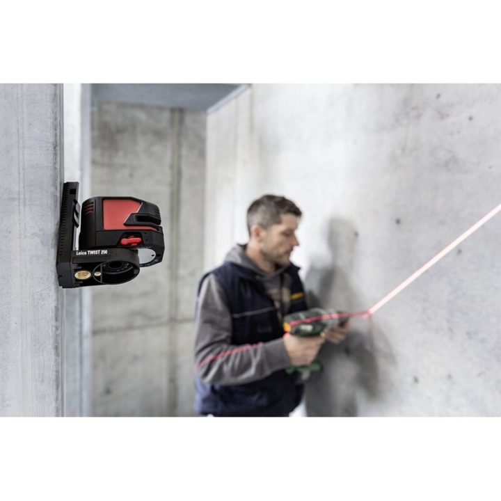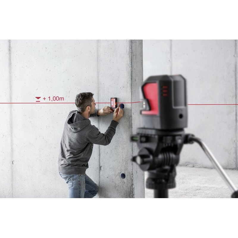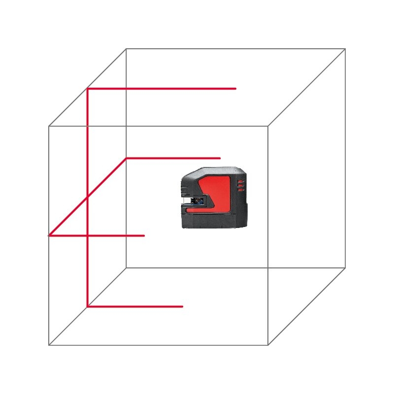 La óptica de alta precisión garantiza una visibilidad de línea láser excepcional de hasta 25 metros, dependiendo de las condiciones de iluminación. Sus líneas láser horizontales y verticales excepcionalmente largas se proyectan a pisos, paredes y techos.